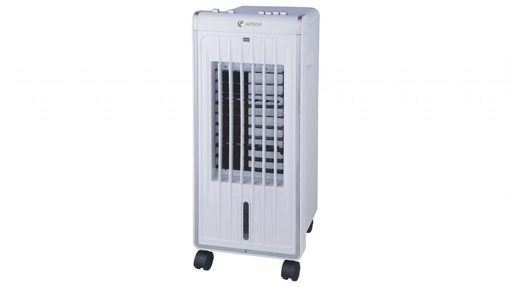 Funciona enfriando la estancia a través del principio de evaporación, es decir, por medio del agua que se vierte en el depósito. Al introducir las cubiteras congeladas en el depósito, reducen la temperatura del agua, por lo que emite una brisa más fría. Este tipo de refrigeración es conocida por ser la más saludable, ya que humidifica la estancia, algo esencial en las zonas del interior peninsular.